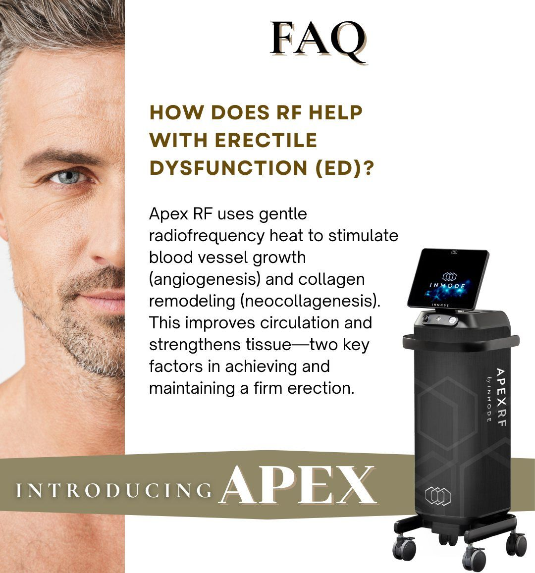 APEX RF IS A NON-SURGICAL TREATMENT THAT HELPS IMPROVE BLOOD FLOW AND TISSUE STRENGTH- DESIGNED SPECIFICALLY FOR MEN DEALING WITH ERECTILE DYSFUNCTION